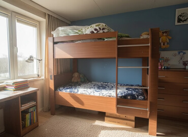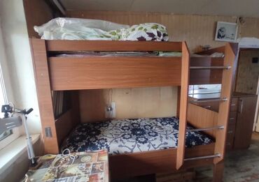 İkimərtəbəli dəmir çarpayı - Material: möhkəm metal karkas, toz boya ilə rənglənmiş - Dizayn: yuxarı qat üçün qoruyucu məhəccər, inteqrə olunmuş şaquli nərdivan; dekorativ tağ və bəzək elementləri...