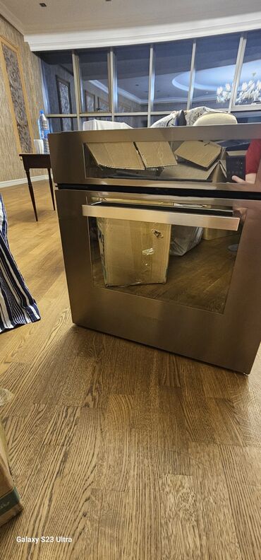 - Korpus: paslanmayan polad/səssiz tünd metal ön panel, iri şüşəli qapı