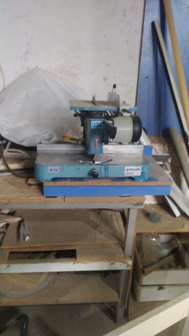 - Frez dəzgahı (üst frez, “ALFA” markalı): masaüstü konstruksiya, yuxarıdan kilidləmə/düşürmə mexanizmi, yan dayaqla birgə. Profil kənarların, oymaların və yuvaların işlənməsi üçün.