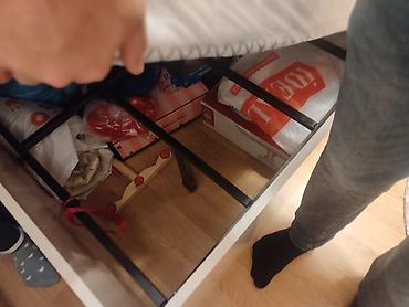 Yataq dəsti – təcili satılır. Ünvan: Xırdalan (Zülfiyyə). Qiymət: 220 AZN. Qarderob yoxdur. Dəst tərkibi: - Çarpayı (iki nəfərlik başlıq dekorları ilə) - 2 ədəd tumba (üst və alt çekmecəli) - Viza...