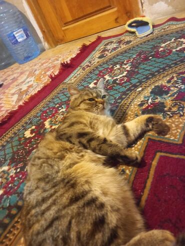 Ev pişiyi – zolaqlı (tabby) rəngdə, qısa tüklü. Xüsusiyyətlər: - Aktiv və oynaq temperament - İnsanla ünsiyyəti sevən, mehriban - Qum qabına öyrəşdirilə bilən - Qida baxımından quru və yaş yemə uy...