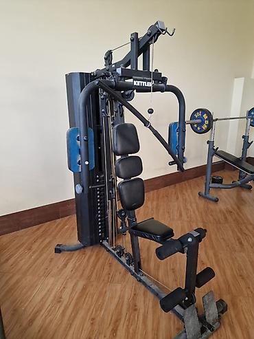 - Kettler çoxfunksiyalı trenajoru: üst/blok çəkisi ilə çoxsaylı məşqlər; dartma (lat pulldown), sinə pressi, pec-deck, ayaq uzatma/qatlama, aşağı blokla çəkilər. Yastıqlı oturacaq və bel dayağı, çəkilər paketi ilə.