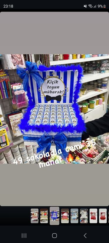 Şirniyyat buketləri və hədiyyə setləri - Tematik, lentli və dekorativ plyonka ilə hazırlanan şirniyyat buketləri. Daxilində müxtəlif şokolad və konfetlər (məsələn: Skittles, Chupa Chups, Choco Pie...