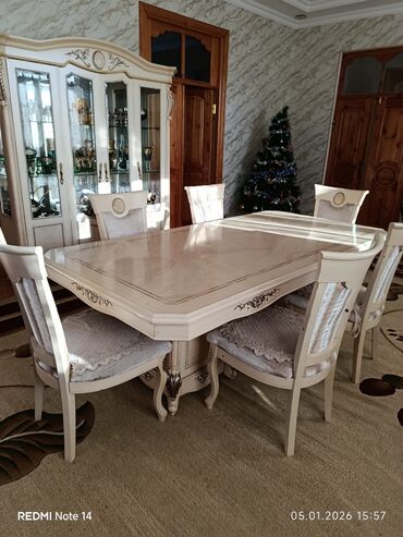 Mətbəx üçün, Yeni, Açılmayan, Dördbucaq masa, 6 stul