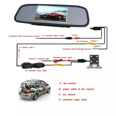 Avtomobil üçün arxa görüntü kamerası + salon arxa güzgüsü bir yerdə ön
