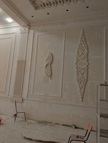 - Klassik və müasir gips dekorları: karniz, plintus, pilastr, rozetka, pano və relyef elementlərin quraşdırılması