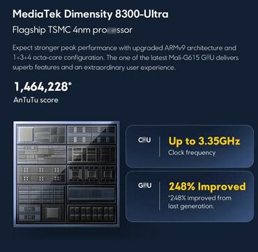 POCO smartfon – 5G Texniki xüsusiyyətlər: - Prosessor: MediaTek Dimensity 8300-Ultra, 8 nüvə, maksimal 3.35 GHz - RAM: 12 GB - Daxili yaddaş: 512 GB ( istifadə oluna bilən) - OS: HyperOS 2.0.207.0...