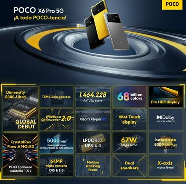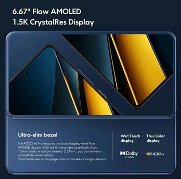 POCO X6 5G pro smartfon Xüsusiyyətlər: -Yaddaş 12/512. - Arxa kamera bloku: 64 MP OIS əsas kamera (stabilizasiya dəstəyi), çoxmodullu çəkiliş üçün...