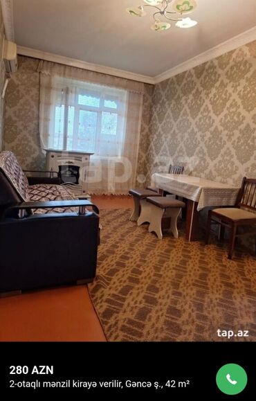 Gəncə şəhəri 4cu mikr, bina-6. mənzil 7, 4cü mərtəbədi, 1 otaq 2 otaqa düzəlib, 2 tonluq su çəni, su daimidi tam təmirli əşyaları ilə--soyuducu, paltar yuyan, yorğan döşək, internetlə birgə, səliqəli iş adamlarına, ailəlilə və ya tələbə qızlara kiraye 300 manata verilir. Ev özümündü makler deyiləm, maklerdə narahat etməsin. ev 24 nömrəli məktəbin qabaqında yerləşir, uşaq baxsadıda yanındadı, əlaqə nömre 055-312-75-95 Səbinə.