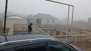 - Üstündə tikili əsası: Həyətyanı ev üçün başlanmış bünövrə/divar işləri görünür