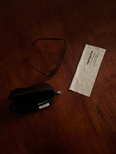 Gözlük – uniseks, qəhvəyi-gradient linzalı, metal karkaslı - Linza: tünddən açığa keçən qəhvəyi (gradient) ton, iri monoblok üslubunda, vintlərlə karkasa bərkidilmiş. - Çərçivə: parlaq tünd metal,...