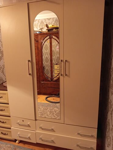 Ölçülər təxmini: hündürlük 2 m ətrafı, en 1.4–1.6 m, dərinlik 50–55 sm. Geyim, ayaqqabı və aksesuarların səliqəli saxlanması üçün praktik seçimdir. Zakaz ilə düzəldilib,1 il işlənməyib. əla vəziyyətdədir.