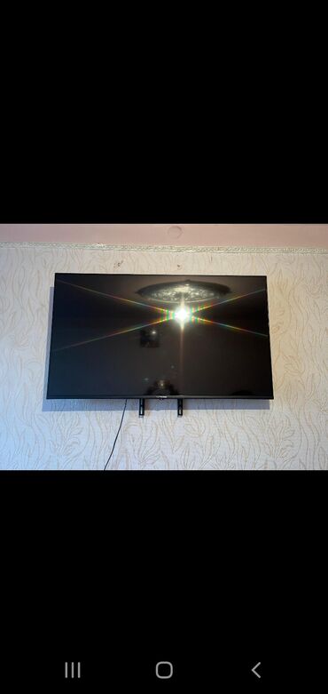 - Ekran: təxminən 42–50 düym düz ekran (divar asılqanı ilə quraşdırılıb)
