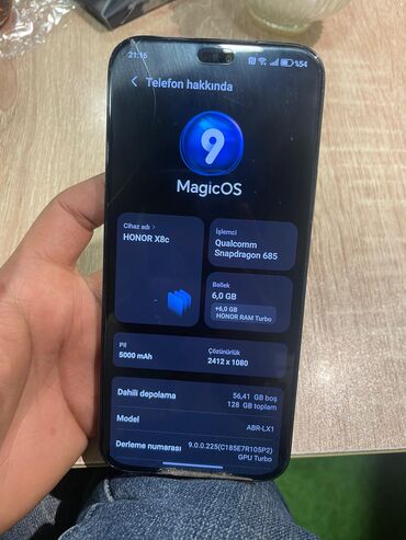 HONOR X8c ( 1 ayın telefonudu problemi yoxdur cızığı çatı yoxdu təzədir az işlənib. Əlavə sualınlz olsa vp aktivdir.