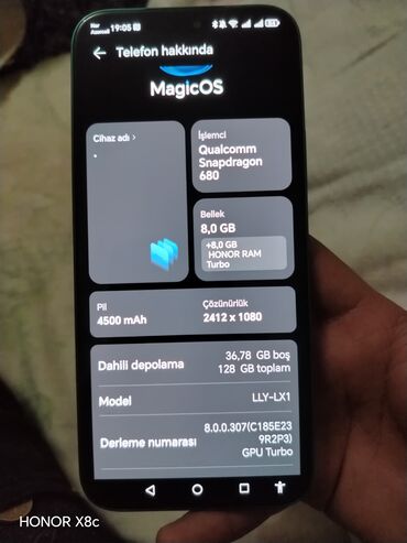 HONOR smartfon Xüsusiyyətlər: - Ekran: 2412 x 1080 çözünürlük, incə çərçivəli böyük ekran - Prosessor: Qualcomm Snapdragon 680 - RAM: 8 GB + HONOR RAM Turbo ilə əlavə 8 GB - Daxili yaddaş: 128 GB ...Razılaşma yolu ilə