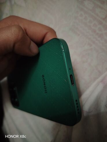 HONOR X8c – yaşıl rəngdə şık dizaynlı smartfon Xüsusiyyətlər: - Korpus: kvadrat teksturalı arxa panel, yaşıl rəng, düz kənarlar - Ekran: tamölçülü displey, ön kamera ekrandakı mərkəz yuxarı hissəd...