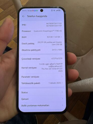 - IMEI-lər iki ədəd (şəkildə göstərilib) – Dual SIM dəstəyi
