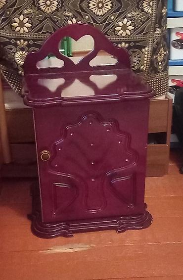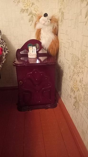 - 2 ədəd eynilikli tumba/komod – bordoya çalan tünd qırmızı rəng, parlaq lak örtük. Üst hissədə dekorativ arakəsmə, aşağıda bir qapalı bölmə. Qapıda metal halqa tutacaq. Dib hissəsi pilləli dekorla işlənib.