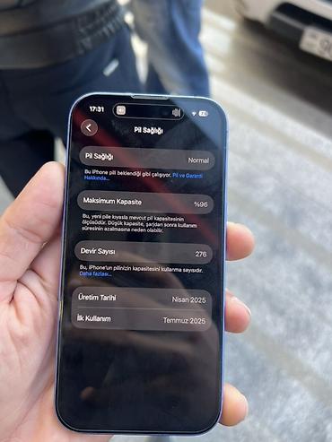 Məhsul: iPhone (mavi rəng, düz kənarlı korpus) Xüsusiyyətlər: - Ekran: tam ekran OLED, True Tone və yüksək parlaqlıq; Face ID çentiği ilə - Rəng və dizayn: mavi rəngli, alüminium düz kənarlar; sol...