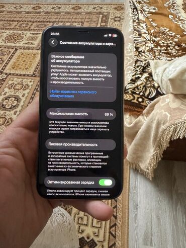 - Batareya bölməsində “Maksimal tutum: 69%” məlumatı görünür, optimallaşdırılmış enerji yüklənməsi aktivdir