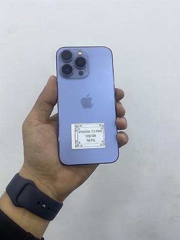 - Üzərindəki etiket məlumatı: “iPhone 13 Pro, 128 GB, 78 pil”.