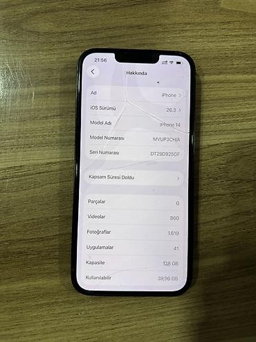 Iphone 14 128 gb. telefon yeniden secilmir ideal veziyyetdedir. hec bir deyisen detali yoxdur. pil 85%. xanim terefinden istifade olunub. barter ucun narahat etmeyin!