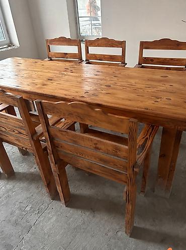 Masa dəsti stol stul dəsti qonaq otaqi mebeli Yemək dəsti – endirim - Dəst: masa + 6 ədəd stul - Masa forması: düzbucaqlı, küncləri yumşaq; həm krem rəngli parlaq üstlü, həm də taxta fakturalı mod...
