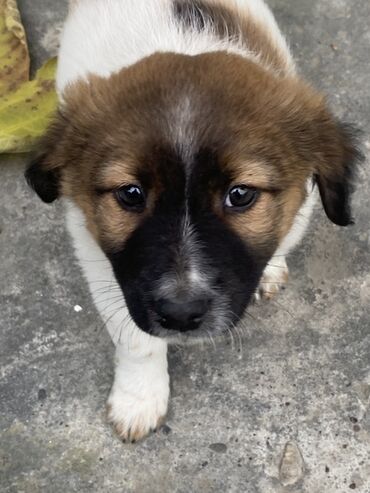 İt balası – qarışıq rəngli (qara-boz) tüklü, sinəsində və pəncələrində