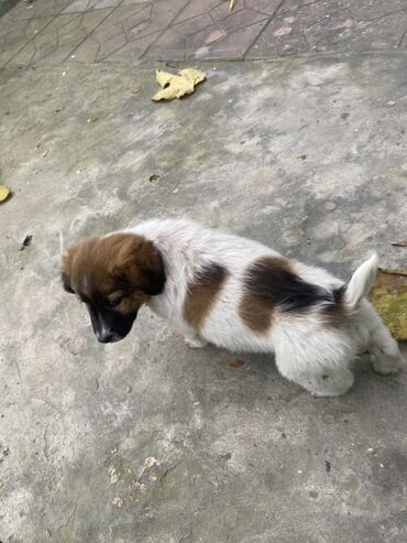 Sevimli balaca it yavrusu - Rəng: ağ-qəhvəyi, bədənində yamaq naxışları - Cinsiyyət: görünüşə əsasən erkək balaca (tam dəqiq deyil) - Yaş qrupu: bala (yeni doğulmuş dövrünü keçmiş, aktiv və oynaq)...