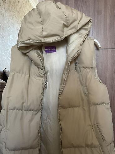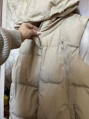 Qadınlar üçün kapüşonlu şişmə jilet - Rəng: açıq bej/kremlə - Material: yumşaq, yüngül və suya davamlı parça effektli üst; içi isti saxlayan dolğu - Ön qapama: tam uzunluqda fermuar - Ciblər: iki ...
