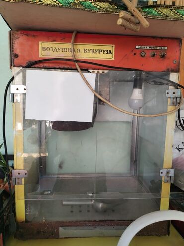 - Popkorn aparatı (rus dilində “Воздушная кукуруза” yazılı): şüşə vitrinli korpus, idarəetmə düymələri (qızdırma, motor, işıq) olan üst panel.