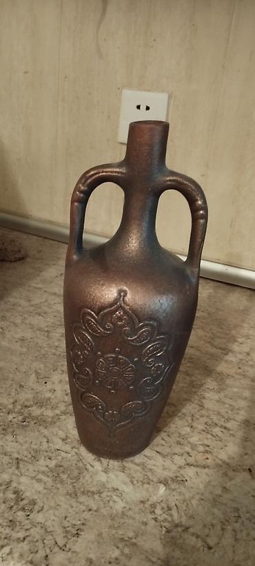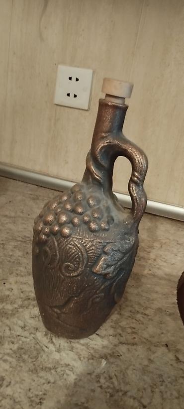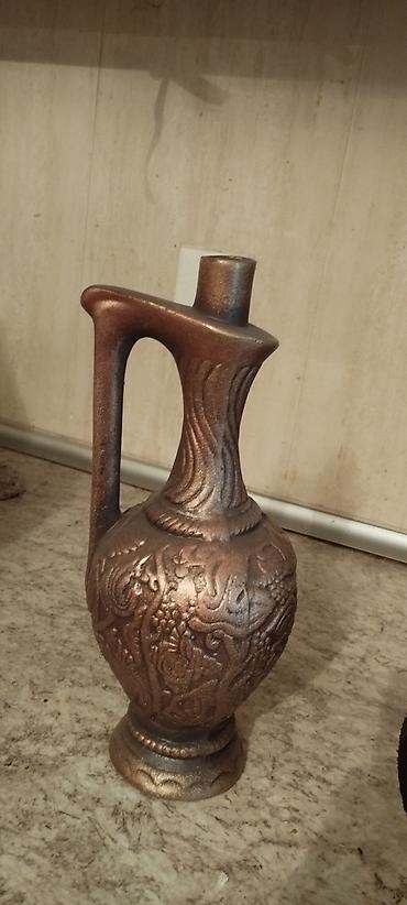 - Tunc-bronz tonlarında sürahi – üzərində üzümlü və bitki ornamenti, mantarlı qapaq.