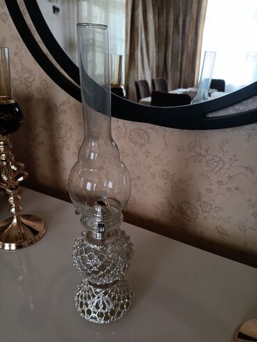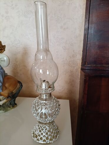 Şəffaf şüşə silindrik borusu olan, hündür boylu kerosin lampası. Lampanın oturacağı və yanacaq çəni metal tor dizaynlıdır, bu da ona zərif görünüş verir. Şüşə hissəsi yanacaq çəninin üzərində yerləşir və lampanın yuxarı hissəsindəki uzun, şüşəli boru alovun ətrafını əhatə edir. Bu lampa həm dekorativ, həm də işıqlandırma məqsədləri üçün istifadə edilə bilər. Gəlin köcəndə istifadə olunur.Mənzillərin interyerinə xüsusi retro atmosfer bəxş edir. Kerosin lampası elektrik enerjisindən asılı olmadan işləyir və istənilən məkanda rahatlıqla yerləşdirilə bilər. Klassik və zərif dizaynı ilə diqqət çəkir. Müasir interyerlərdə də maraqlı bir detal kimi istifadə edilə bilər. Material: Şüşə Yanacaq Növü: Kerosin Rəng: Şəffaf, Gümüşü Dizayn: Klassik, Tor İstifadə Sahəsi: Toy,Ev, Bağ Evi Funksiya: İşıqlandırma, Dekorativ Yanacaq Tutumu: Orta Borunun Forması: Silindrik Oturacaq: Dəyirmi Quraşdırma: Stolüstü Alov Tənzimləyicisi: Var Daşınabilən: Bəli Təmizlənmə: Asan Stil: Retro Ağırlıq: Orta Ölçü: Böyük İşıqlandırma Növü: Alovlu Quraşdırma Növü: Sərbəst Dayanan Enerji Mənbəyi: Kerosin. Toy günü 1cə gün istifadə olunub.İnşallah kimə qismət olarsa xoşbəxt olar.