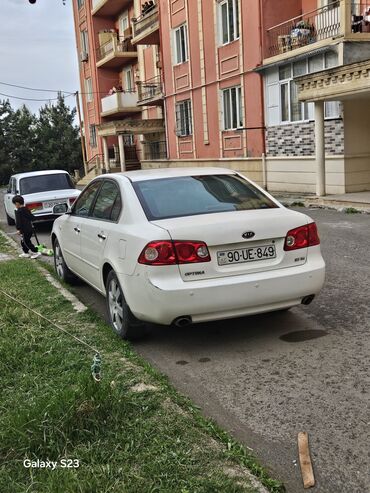 Kia Optima sedan – ağ rəng, AZ nömrə nişanı 90-UE-849. 4 qapılı, ön və arxa parklama üçün geniş görsənmə. 2 egzoz çıxışı, yüngül lehimli disklər, duman faraları, arxa “Optima” və “EX” emblemləri. ...
