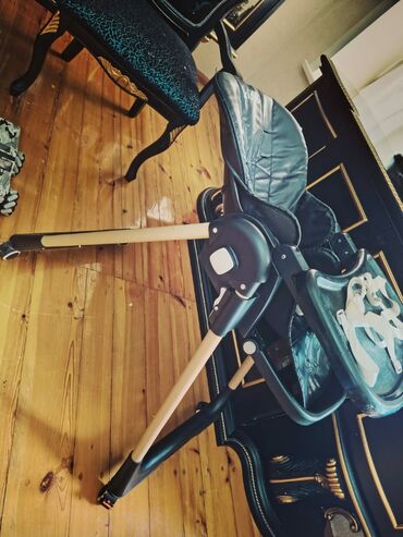 Kidilo uşaq yemək kreslosu - Rəng: qara-qızılı detallarla - Yumşaq oturacaq və tropik naxışlı çıxarılan parça örtük - Beşnöqtəli təhlükəsizlik kəməri - Geniş çıxarılan əlvan süfrə/tray (stəkan yuv...