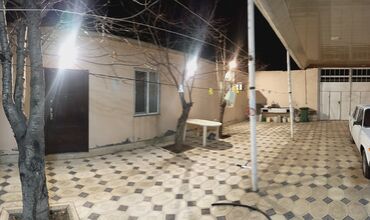 - Həyətyanı sahəsi daş/kafel döşəməli, ağaclı, işıqlı və genişdir. Həyətdə stol, paltar asmaq üçün iplər və suxəttinə çıxış mövcuddur.
