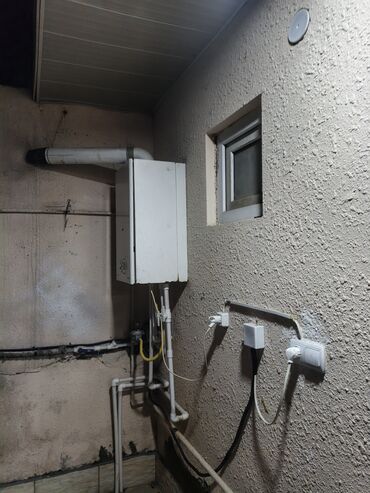 - Qaz, su, işıq mövcuddur. Divarda quraşdırılmış qaz kombisi