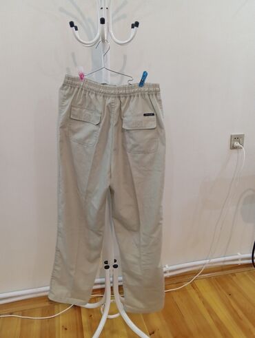 Bej rəngli kişi şalvarı - Ölçü: 36 (şəkildə göstərilib) - Model: rahat kəsim, düz balaq - Bel: rezinli (elastik), kəmər halqaları var - Bağlanma: ön tərəfdə düymə və fermuar - Ciblər: iki yan cib;...