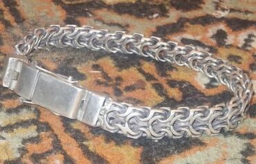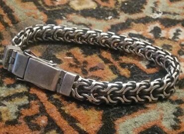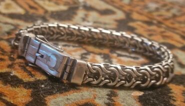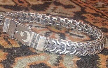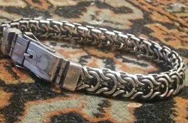 925 əyar gümüş kişi/qadın bilərziyi - Material: 925 ayar sterling gümüş (kiliddə “925” damğası mövcuddur) - Zəncir forması: dekorativ halqalarla bağlı, rellefli modul həlqələr - Rəng: parlaq gümüş...