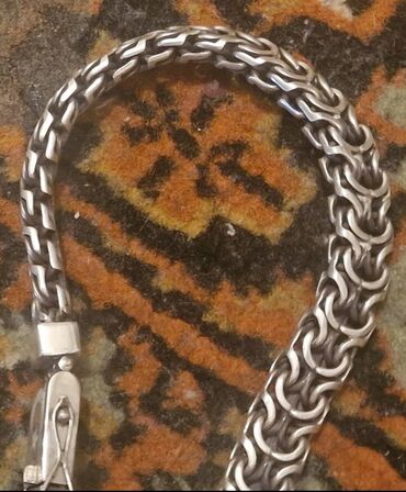 Gümüş rəngli kişi bilərziyi - Material: metal, gümüş rəngdə - Zəncir tipi: sıx hörgülü, dairəvi həlqəli dizayn - Qalınlıq: orta/eni geniş, gücləndirilmiş həlqələr - Bağlanma: möhkəm karabin (qarma...