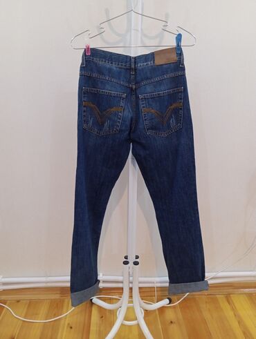 Klassik mavi rəngdə cins şalvar - Material: denim (pambıq qarışımı), orta qalınlıq - Model: düz kəsim, 5 ciblə (2 ön, 1 kiçik sikkə cibi, 2 arxa) - Bağlanma: metal düymə və fermuar - Bel hissəsi: k...