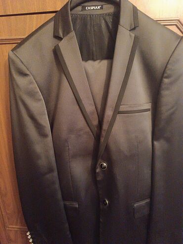 Geyim sifarişlə yeni alınıb gətirilib və sadəcə 44-0 ölçüsü uyğun gəlmədiyindən satılır. İki parçalı kişi kostyumu – qrafit boz rəngdə - Üst: ikicərgəli düymələmə, geniş haşiyəli (peak lapel) yaxa,...