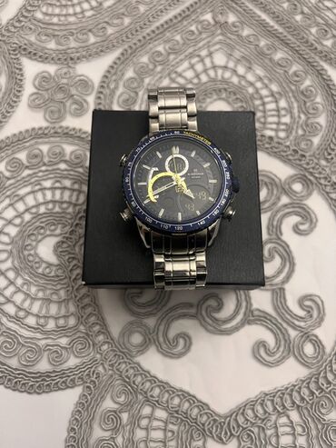 İdman üslublu, çoxfunksiyalı dizayn: tachymeter çərçivəsi, chronograph alt-siferblatları və rəqəmsal ekran bir arada. Həm gündəlik istifadə, həm də klassik geyimlə uyğun görünüş. Paslanmayan polad korpus və qolbaq davamlılıq və möhkəmlik verir.