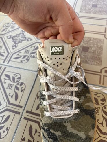 - Rəng/naxış: Kamuflyaj (yaşıl, boz, bej tonları) – qara Nike swoosh loqosu