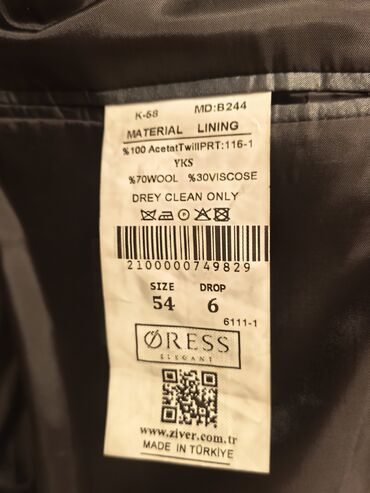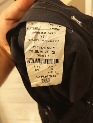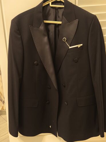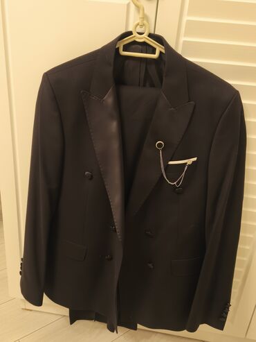 Geyim sifarişlə yeni alınıb gətirilib və sadəcə 44-0 ölçüsü uyğun gəlmədiyindən satılır. İki parçalı kişi kostyumu – qrafit boz rəngdə - Üst: ikicərgəli düymələmə, geniş haşiyəli (peak lapel) yaxa,...