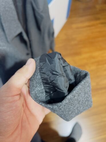Klassik kişilər üçün palto - Rəng: tünd boz/çəhrayı olmayan, xırda şevron (balıqçı sümüyü) naxışlı - Material görünüşü: yun qarışığına bənzər qalın, isti toxuma - Dizayn: klassik düz kəsim, dizdən...