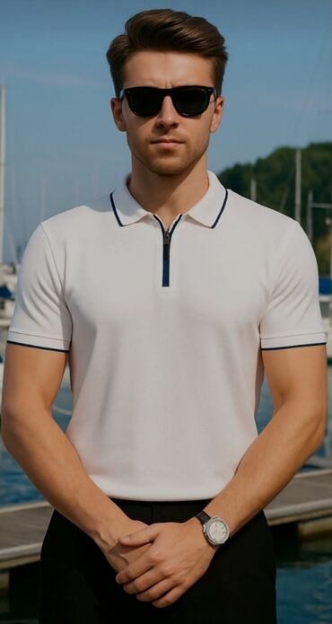 Ağ rəngli polo köynək - Model: Qısaqol, 3 düyməli polo yaxa - Rəng