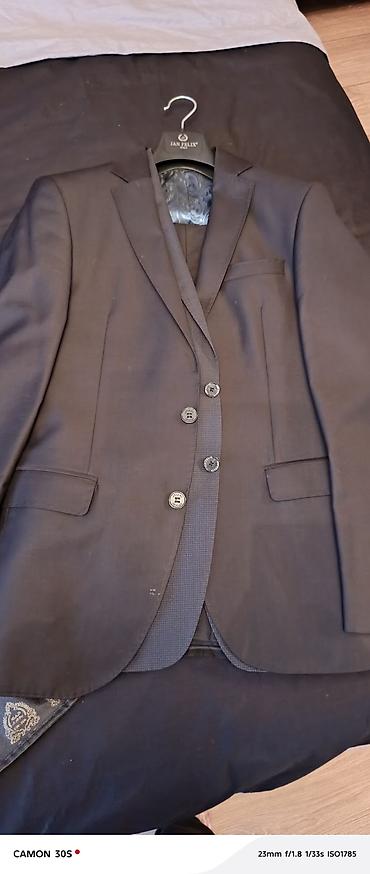Üçlü dəst. Pencək,jılet,şalvar. Vəziyyəti əla. Cəmi 2 dəfə toya geyinilib. Ölcü 44 Klassik kişi pencəyi – tünd boz rəngdə incə şaquli zolaqlı. Xüsusiyyətl...