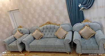 - Tərkib: 1 ədəd 3 nəfərlik divan + 2 ədəd kreslo (ümumilikdə 3 parçalı dəst).