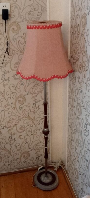 Klassik dizaynlı döşəmə lampası - Tip: Torşer (döşəmə lampası) - Abağur: Parça material, açıq çəhrayı ton, haşiyəsində tünd qırmızı krujeva bəzək. Yuxarı hissədə dairəvi açılış. - Korpus: Metal və...